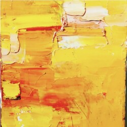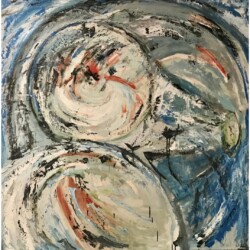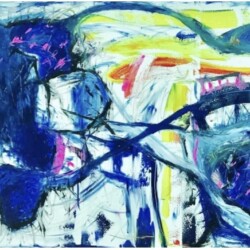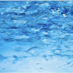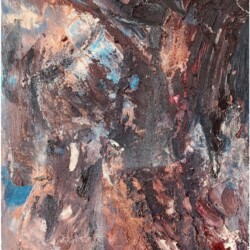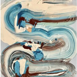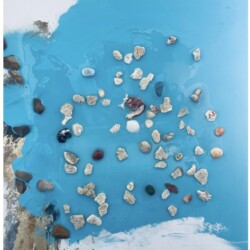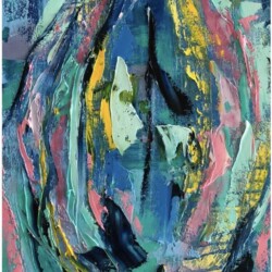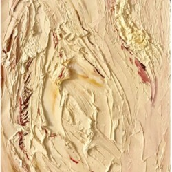 Her art is unmistakable for the abstract features that are often venturing to the three- dimensional field, a fascinating blend of two genres; painting and sculpting. She uses thick layers of paint for extraordinary volume and drama, fused with physical objects, such as gemstones or sand.