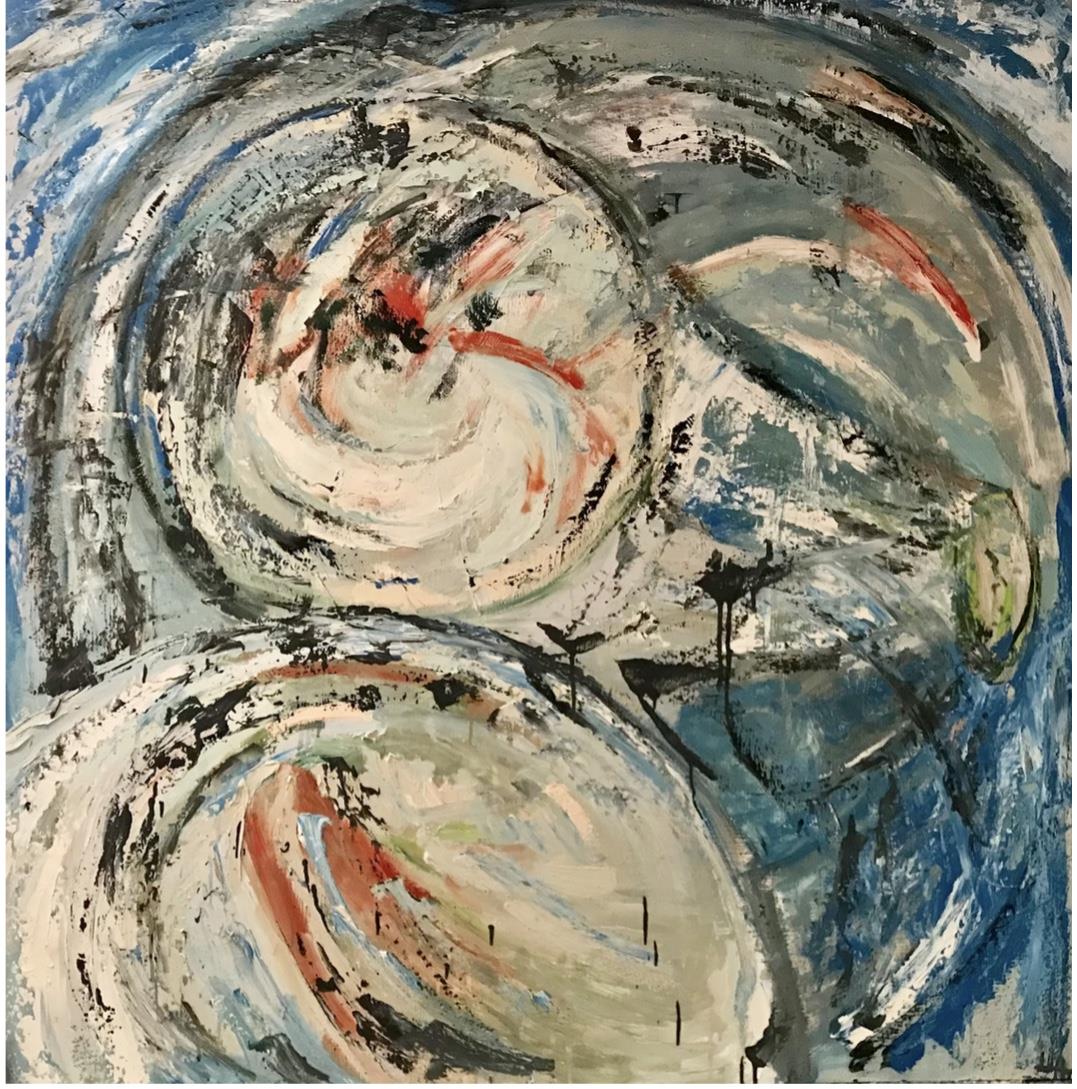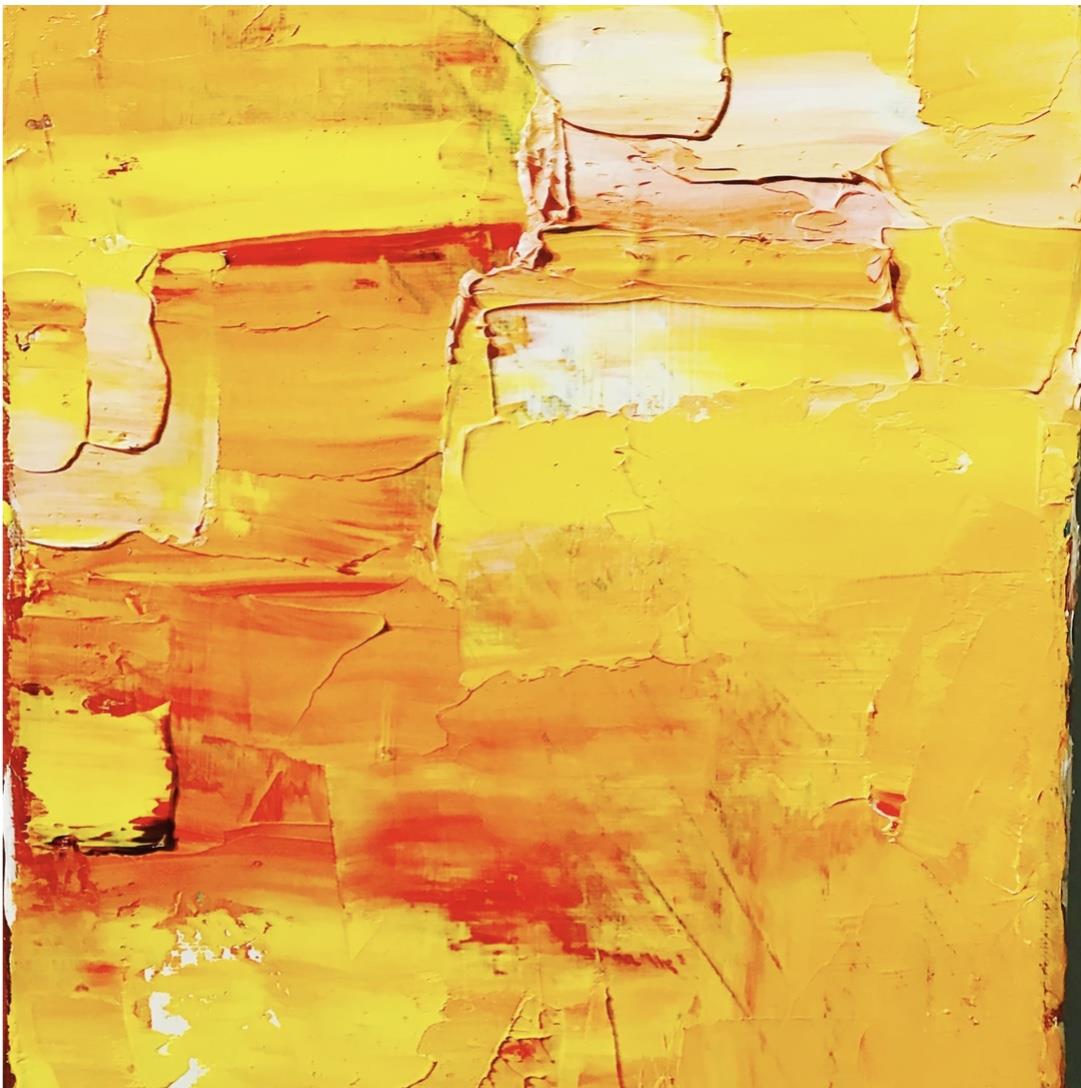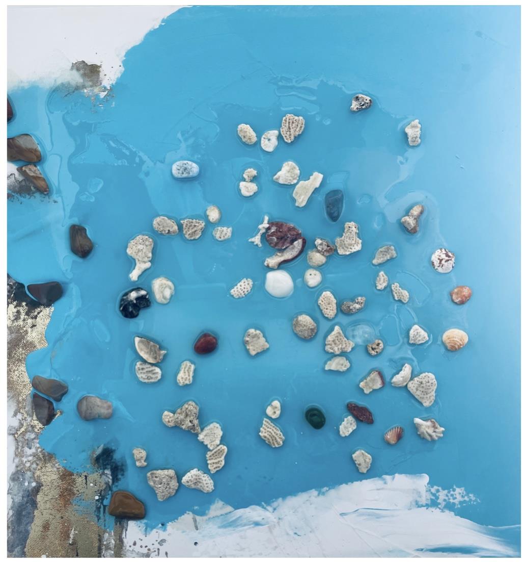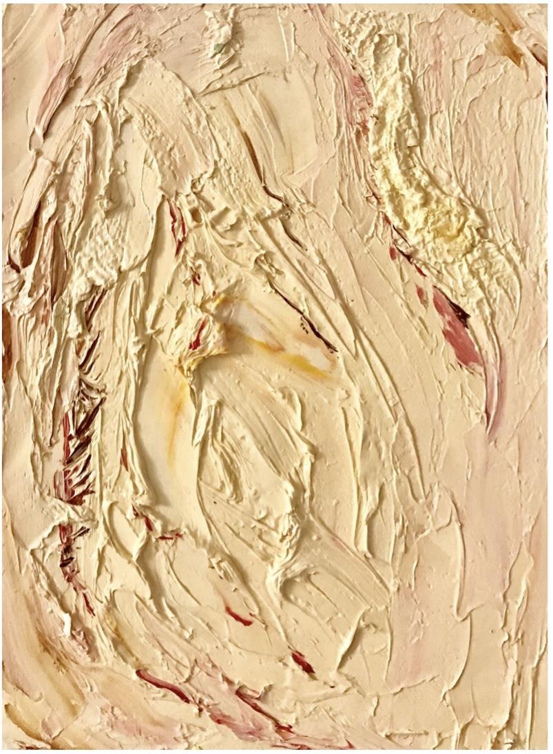Her art is unmistakable for the abstract features that are often venturing to the three- dimensional field, a fascinating blend of two genres; painting and sculpting. She uses thick layers of paint for extraordinary volume and drama, fused with physical objects, such as gemstones or sand.